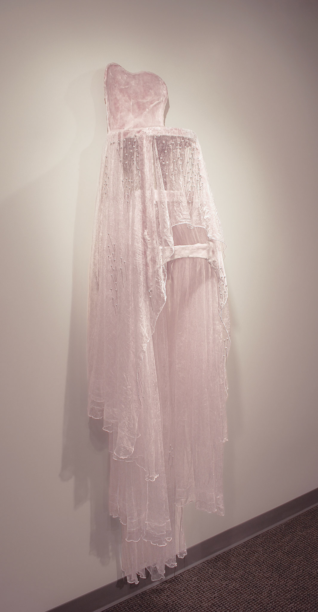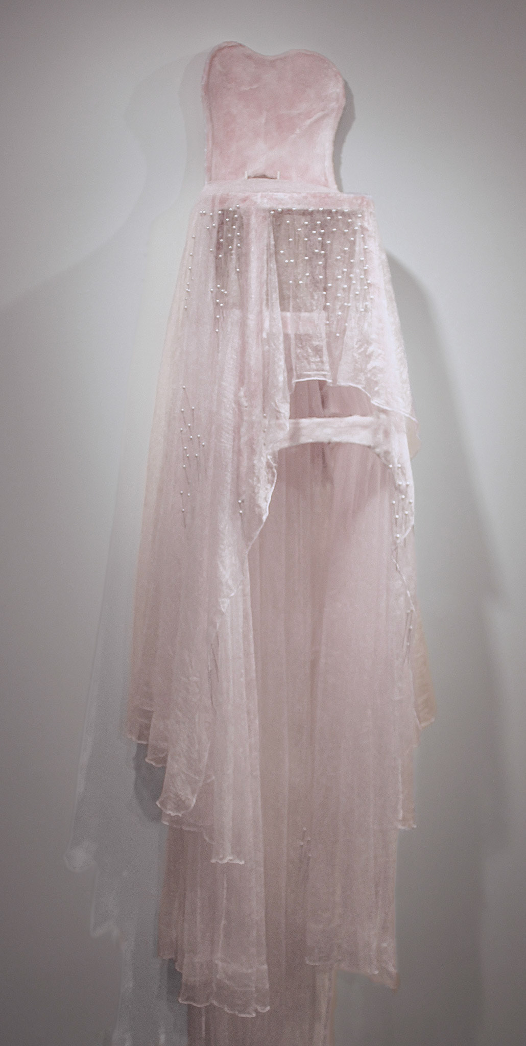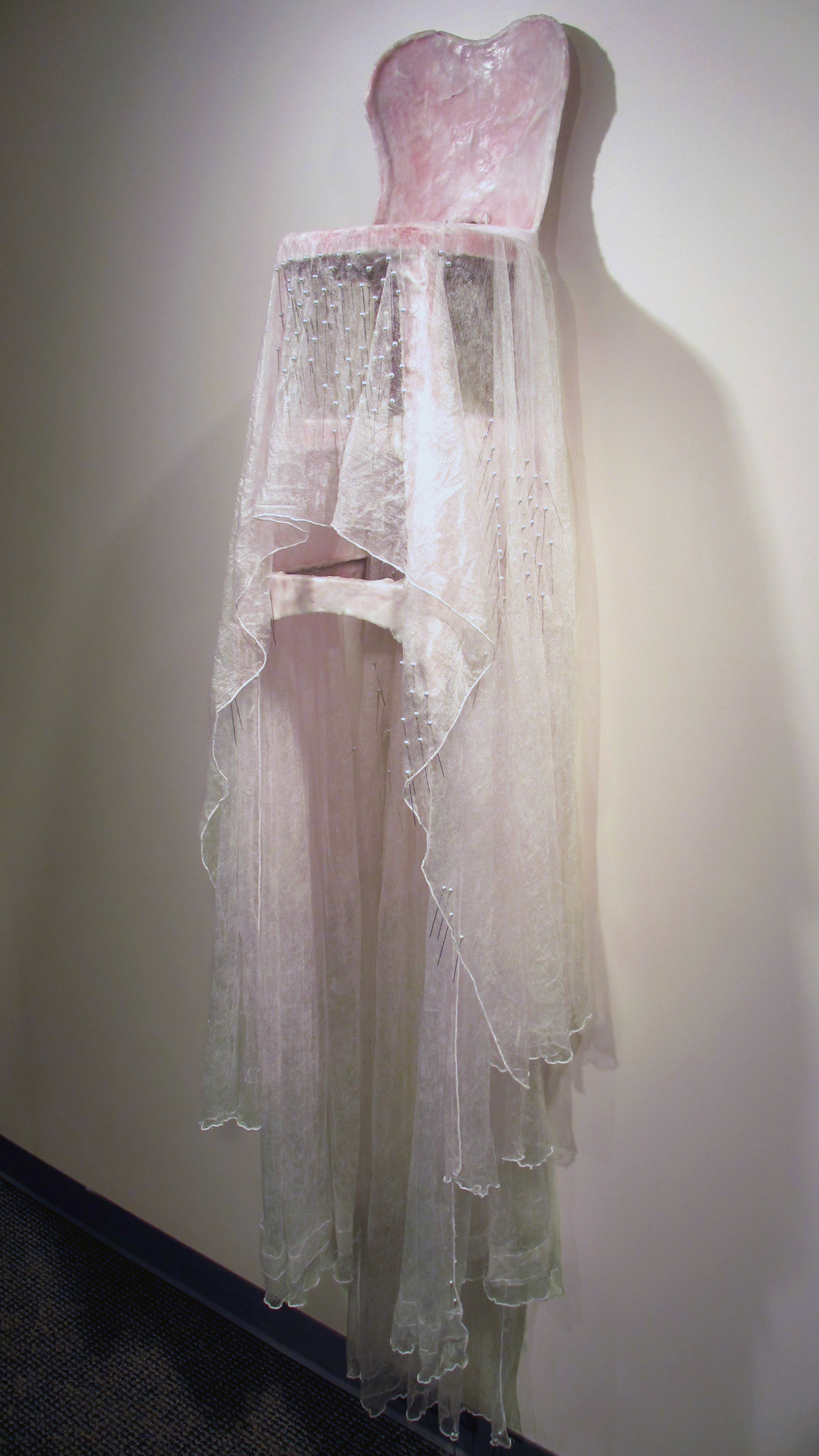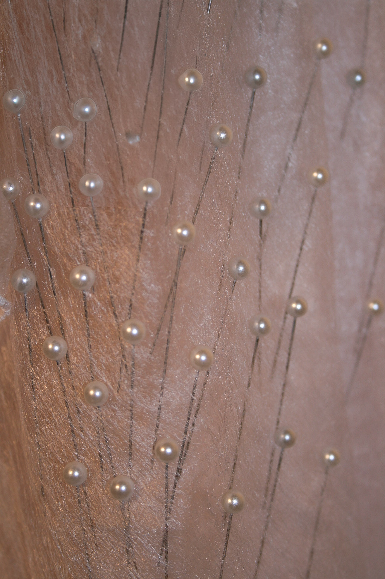Steel, non-woven fabric, wax, pearl head pins, 53" x 14" x 13", 2012