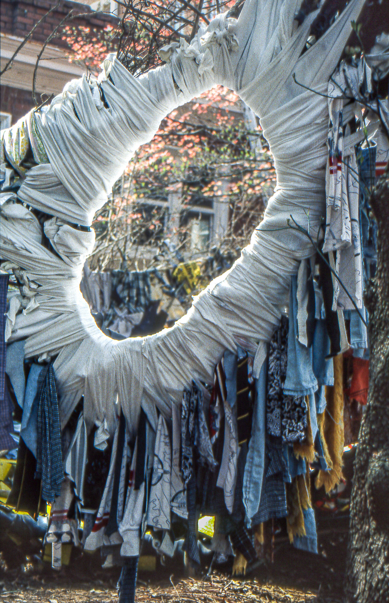 Crafted entirely from discarded items—abandoned belongings and salvaged materials found on the streets—this installation serves as a stark reminder of our consumer habits and their consequences. Each piece tells a story, woven together to form a human nest constructed from society's cast-offs.